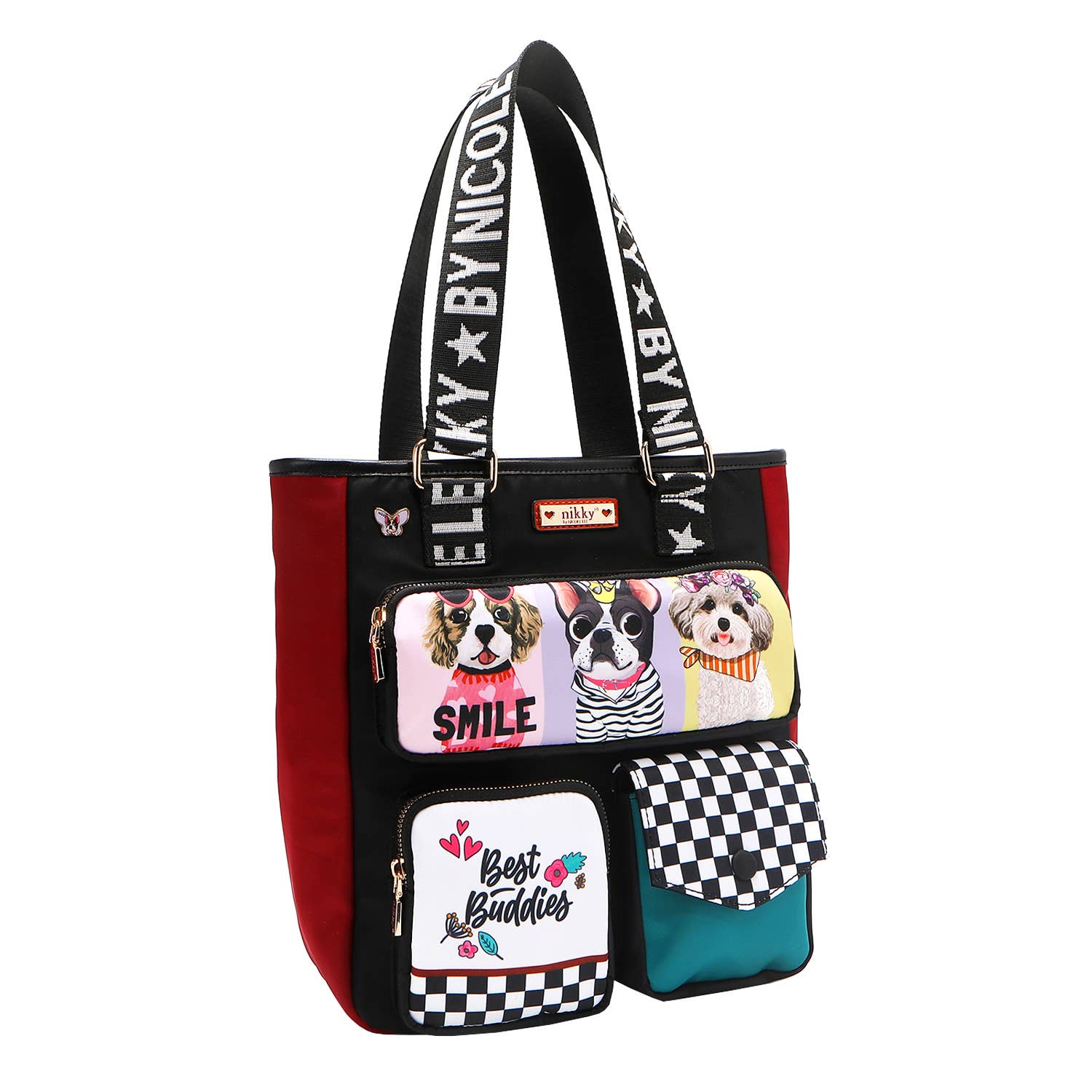 Large interior lined with Nikky signature puppy print nylon fabric.